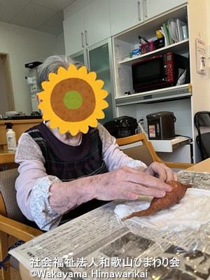 利用者様にもお手伝いいただき、キッチンでやさしく洗ってもらったり、キッチンペーパーとラップで包む作業をお願いしました✨