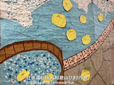 黄色いゆずを一つひとつちぎり絵で表現し、