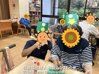 星や丸シールを貼りつけると一気に華やかになり、「おぉ〜きれいになってきたなぁ!」と利用者様も嬉しそうでした。