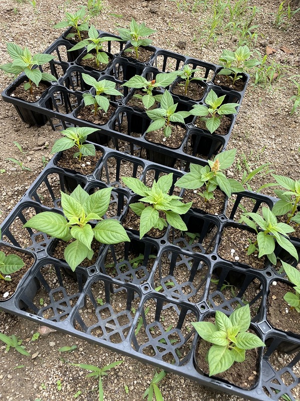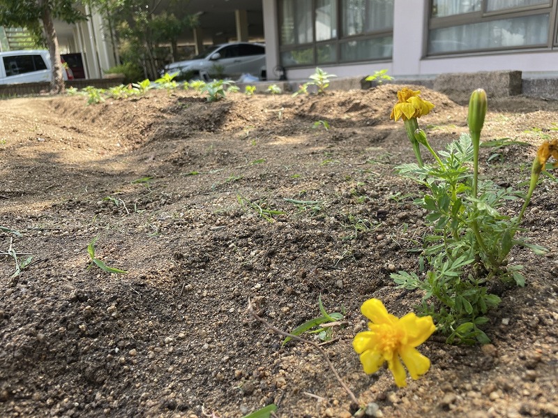 ☀☀☀暑さ厳しい中☀☀☀2週間の間に生えた雑草をむしり取って、畝を作り、マリーゴールド、ケイトウの苗を植えてくれました🏵