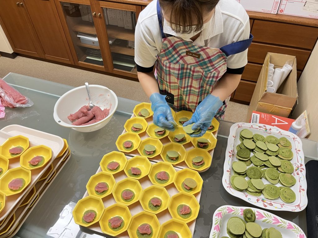 続いて誕生日会でご提供させて頂く、どら焼きです。介護老人福祉施設広川苑の栄養士が1つ1つ丁寧に手作りしました。