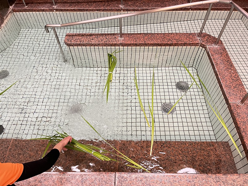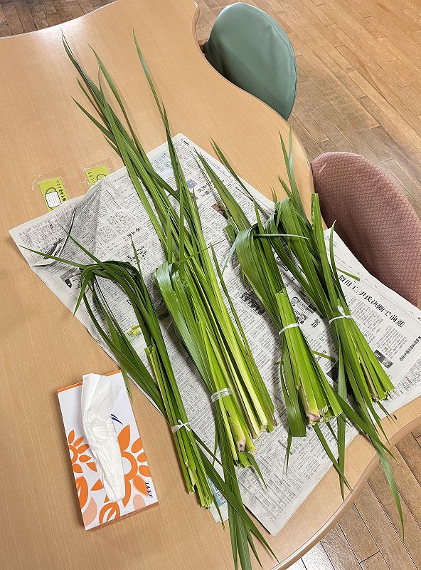 今回はこどもの日ということで、デイサービスセンター広川苑の職員が「菖蒲」収穫し、浮かべました。