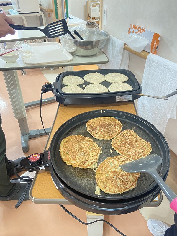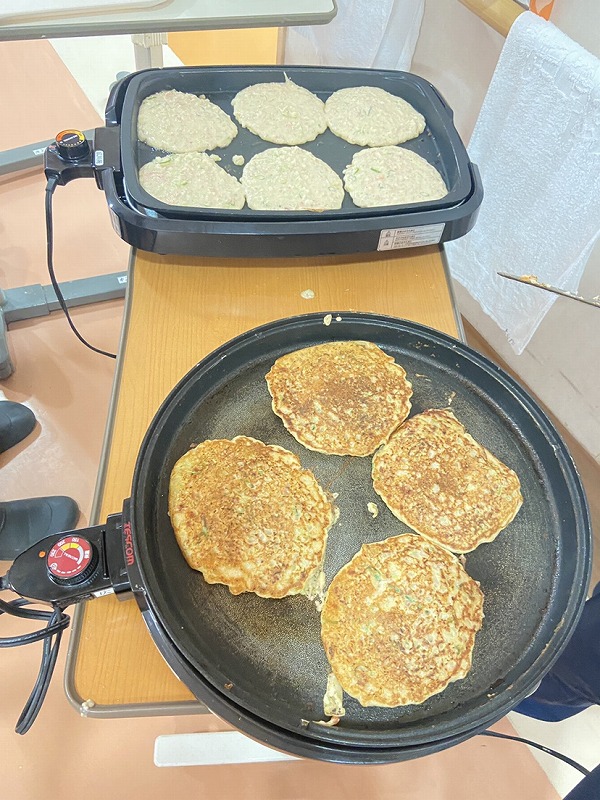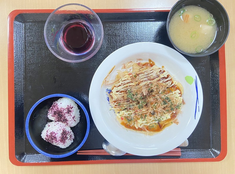 じゅうじゅう、香ばしい匂いがホールに広がる、お好み焼きをご提供させていただきました!