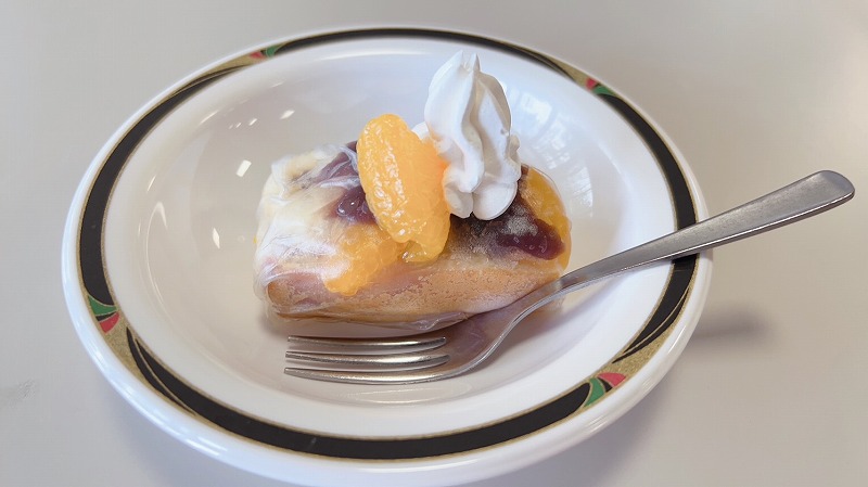 おやつは、ライスペーパーで包んだ「もっちり食感!フルーツすけすけスイーツ生春巻き」です🍊