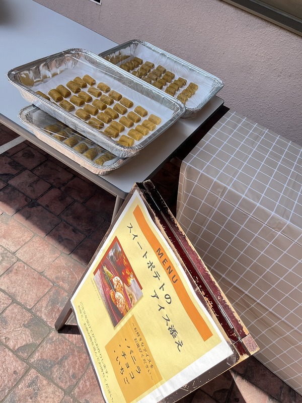 アイスを選んでもらって“キッチン”ではスイートポテトを炙って香ばしくします🍨🍠