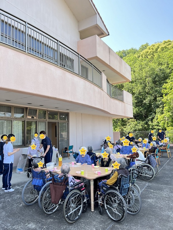 お飲み物のメニューは4種類。普段、水分を好んで飲まれない入所者様も、今日はゴクゴク、おかわりの声を何度も😆