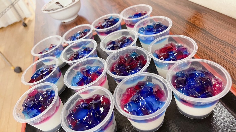 2023年6月22日 / 最終更新日 : 2023年6月23日 himawarikai デイ広川苑 紫陽花ゼリーで梅雨の憂鬱を吹っ飛ばせ! 本日のスイーツは、、、紫陽花ゼリーです。 赤と青のゼリーが色鮮やかに映えるゼリーです。 ゼリーの下はまろやかな牛乳プリンです🥛🐄🐄🐄 利用者様にも大好評!すぐになくなってしまいました😄 コメントを残す コメントをキャンセルメールアドレスが公開されることはありません。 ※ が付いている欄は必須項目ですコメント ※ 名前 ※ メール ※ サイト 次回のコメントで使用するためブラウザーに自分の名前、メールアドレス、サイトを保存する。