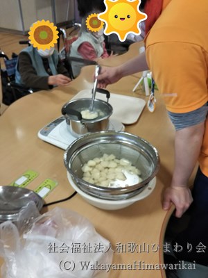 今日はおやつレクとして、利用者様と一緒におしるこを作りました!