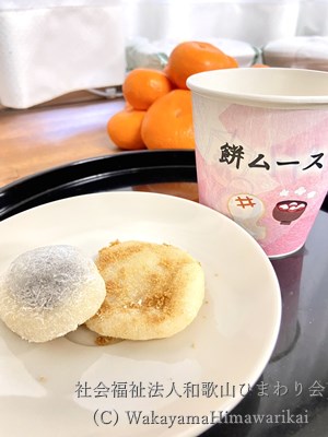こうして出来上がったお餅や餅ムース(嚥下機能が低下された方)をお汁粉入れたりして召し上がって頂きました。
