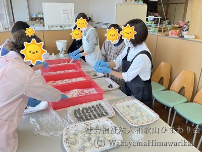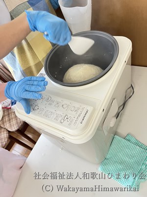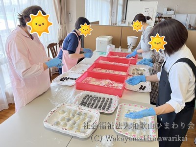 介護老人福祉施設広川苑、デイサービスセンター広川苑、ケアハウスヘリオスでは、利用者様に出来立てのお餅を召し上がって頂くため、職員総出で、もち米からお餅を作りました。