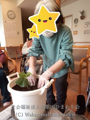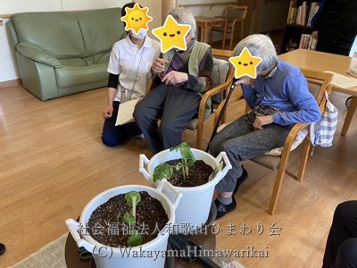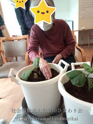 グループホーム向日葵倶楽部では、夏の収穫に向けて野菜苗を植えました。