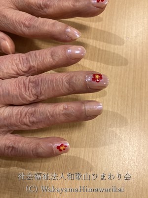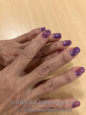 今日は、ネイルセラピーとしてきれいなマニキュアを塗らせて頂きました。