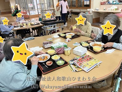 お風呂の後は、お楽しみのイベントランチ。本日は子どもの日にちなんだ、大人のお子様ランチメニューです😋