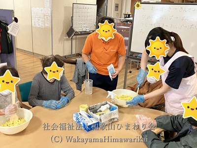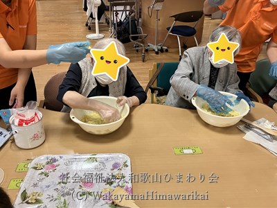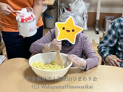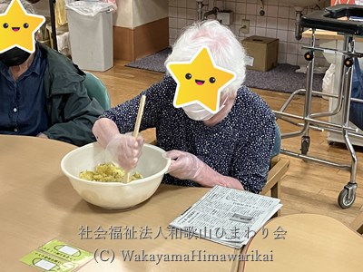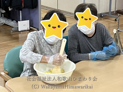 利用者様にさつま芋の皮むき、潰してこねる作業、丸める作業等、様々な作業を手伝って頂きました🙌