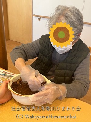 入居者様みんなで力を合わせてガトーショコラ作り🔪