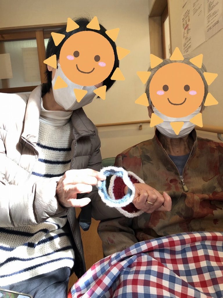 グループホーム向日葵倶楽部にご入居頂いている利用者様が、ご家族様の為に編んだ手編みのシュシュをプレゼントされました🙌