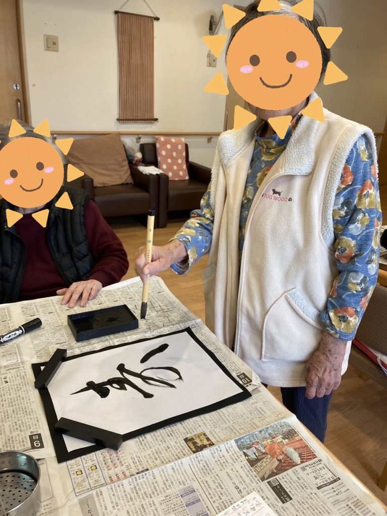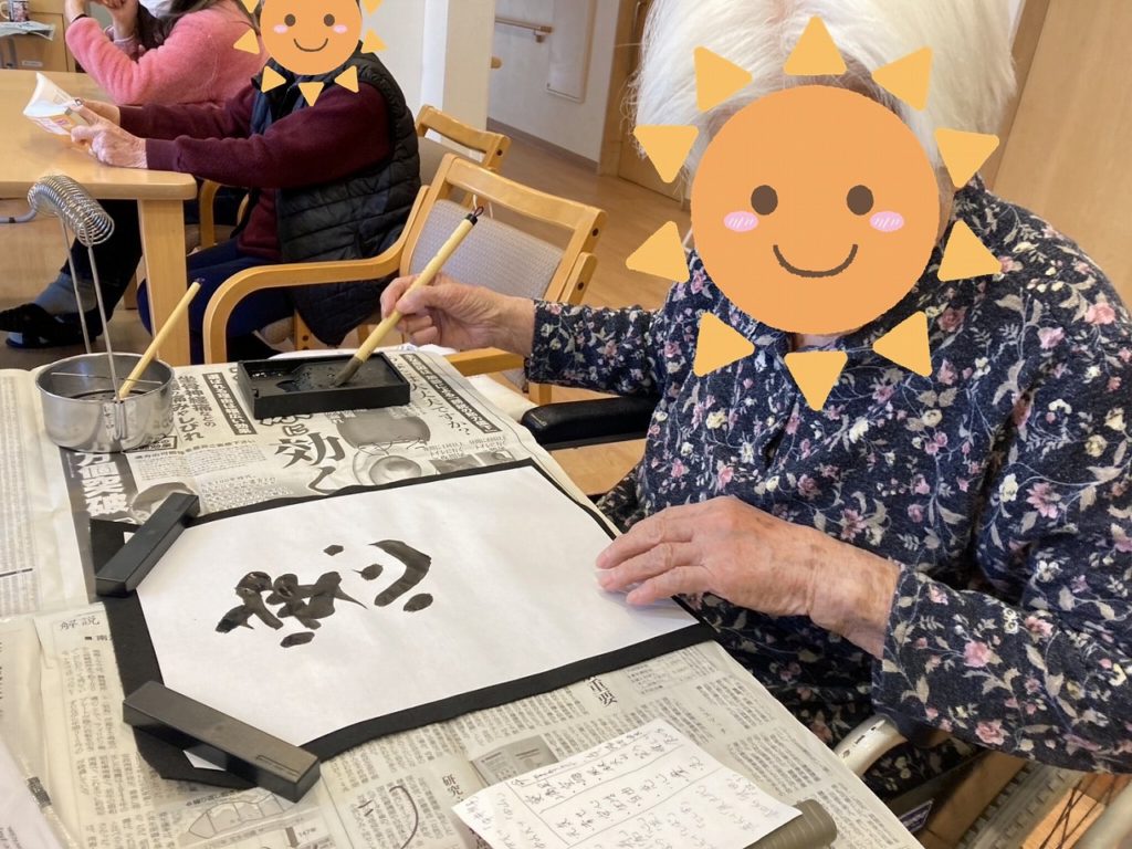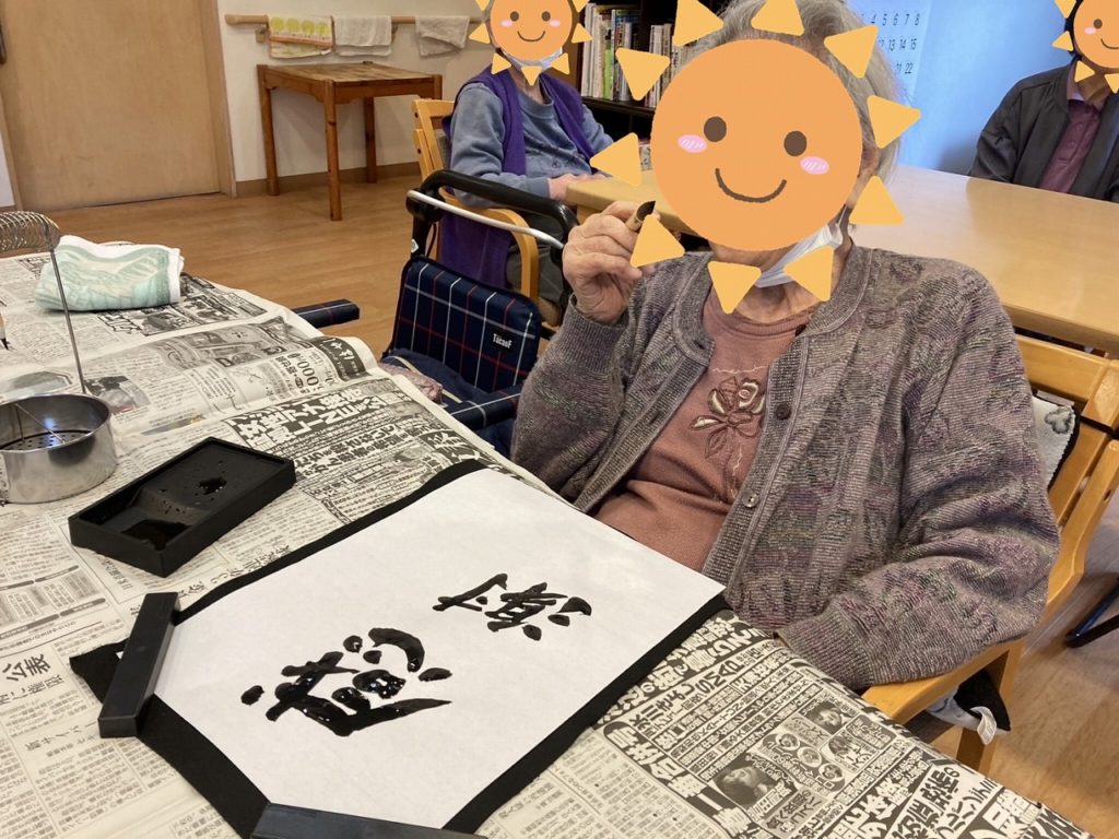 入居者の皆様が筆を手に取り、それぞれの想いを込めた文字をしたためられました。