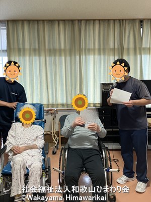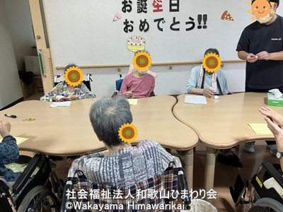 皆でハッピーバースデーの歌を歌い、手作りのバースデーカードをお渡しすると、主役の方はちょっぴり照れながらもニッコリ。