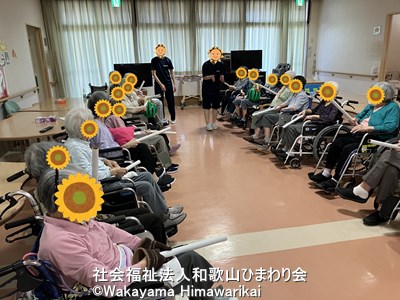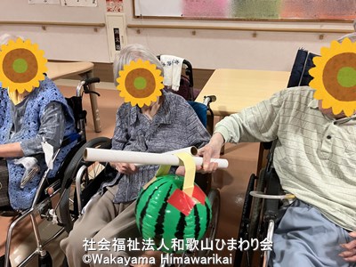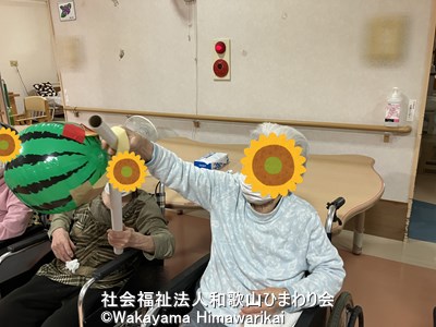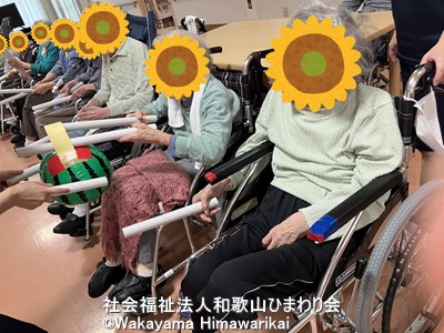 介護老人福祉施設広川苑では毎月恒例イベントとして、お誕生日会と合わせて身体を動かすレクリエーションを実施しています。