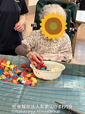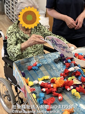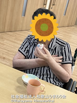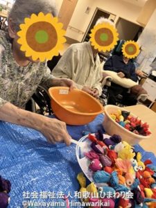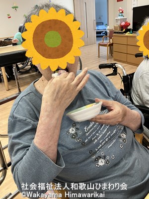 最初はうちわでそっとすくっていた入所者様も、思うように取れないと自然と手が伸びて…😆
