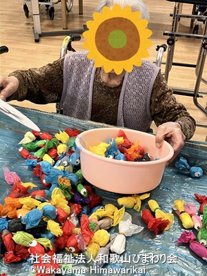 「ほら、捕まえた!」と笑顔で見せてくださる姿に、職員も思わず一緒に大笑い。