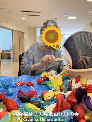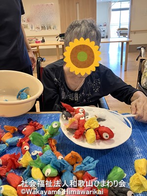 一週間ほど前の出来事になりますが、新館3階でも手作り金魚すくいレクリエーションを開催しました😊