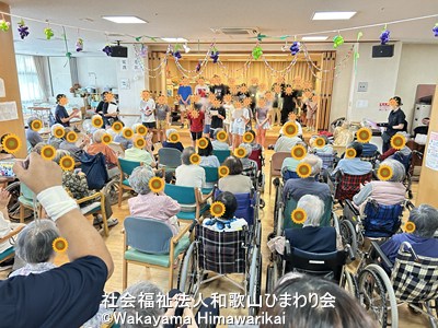 続いて「いっしょに歌いませんか?😊」とお声かけいただき、利用者様、入所者様、職員も一緒に参加!