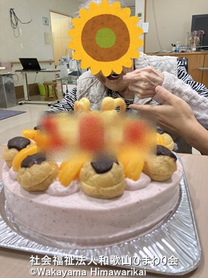 ホールケーキは同じく入所者様のご家族様が経営されておられるケーキ屋さんで購入。その入所者様も大変喜んでくださっていました。