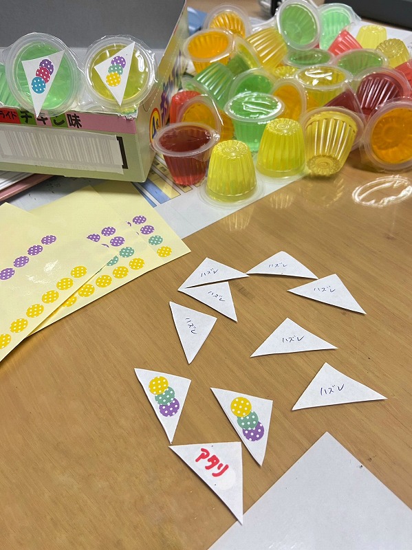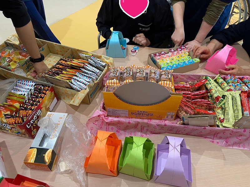 入所者様のおやつとして、入所者様自身に食べたいものを自由に選んでいただけるよう、手作りの100円紙幣をお渡しし、チョイスして頂きました。